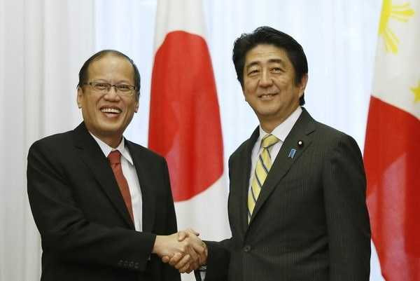 | hủ tướng Nhật Bản Shinzo Abe (phải) tại cuộc gặp với Tổng thống Philippines Benigno Aquino |