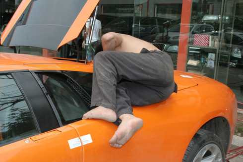 Hình ảnh siêu xe Lamborghini Aventador màu vàng được thay lốp ngay trên hè mà không phải trong một xưởng bảo dưỡng của Lamborghini, và do người thợ bình dân thực hiện gây ấn tượng mạnh khi xuất hiện trên mạng. Trước đó, một người thợ khác từng phải nằm bò trên chiếc Murcielago màu cam để sửa động cơ cho siêu xe.