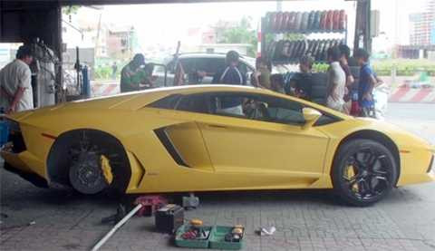 | Lamborghini Aventador thay lốp ngay giữa đường vài năm trước tại Sài Gòn (Ảnh: Hoàng Thanh) |