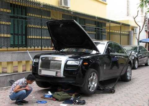 | Rolls-Royce siêu sang trị giá hàng chục tỷ nằm ngay trên hè Hà Nội để "khám bệnh" vào tháng trước. (Ảnh: Nguyễn Tới) |