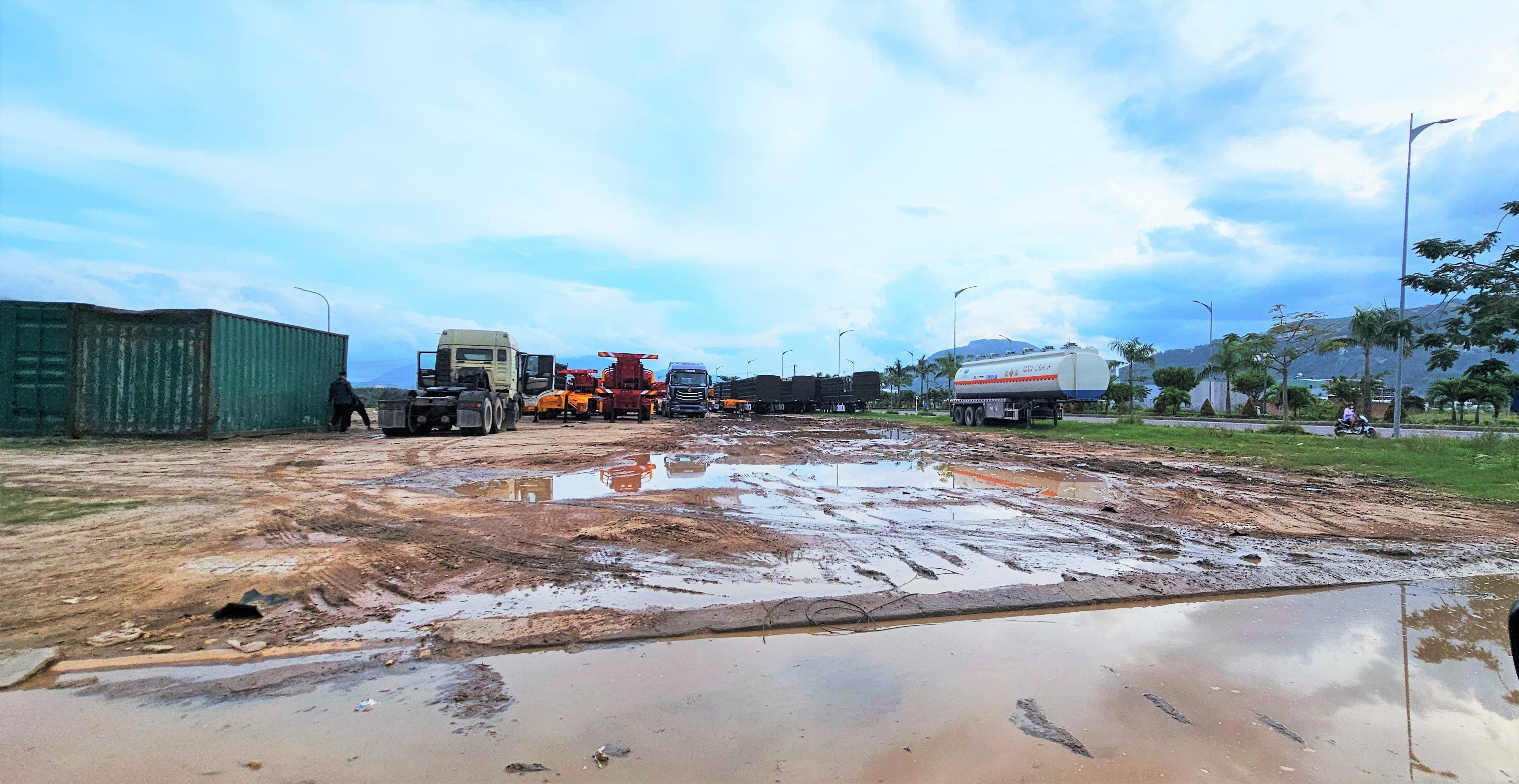 Tuy nhiên trong thời gian qua, một bãi tập kết xe, thiết bị án ngữ trên diện tích đất lớn thuộc khu đô thị, dọc bên tuyến đường nghìn tỷ đồng kết nối trung tâm Quy Nhơn đến Khu công nghiệp Becamex Vsip tại xã Canh Vinh.