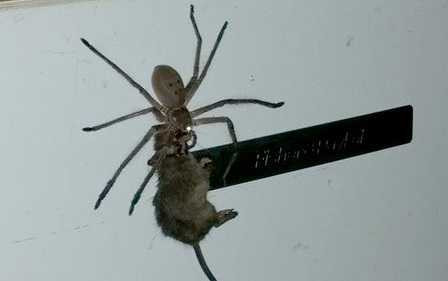 Nhện khổng lồ đang săn chuột