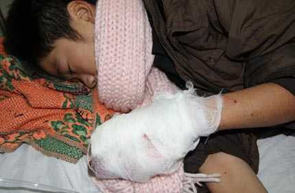 Võ Văn Dung đau đớn với bàn tay bị nát vì pháo