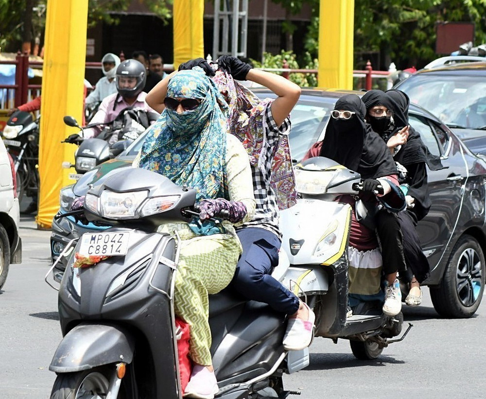 Người dân quấn khăn tránh nắng nóng khi di chuyển trên đường tại Bhopal, Ấn Độ ngày 27/5/2024. (Ảnh: ANI/TTXVN)