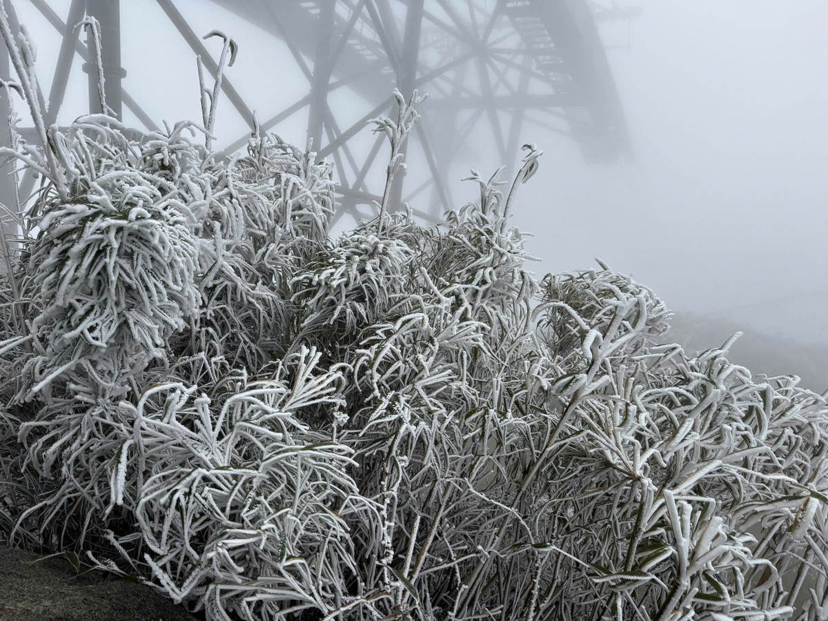 Tuyết rơi phủ kín cây cỏ trên đỉnh Fansipan.