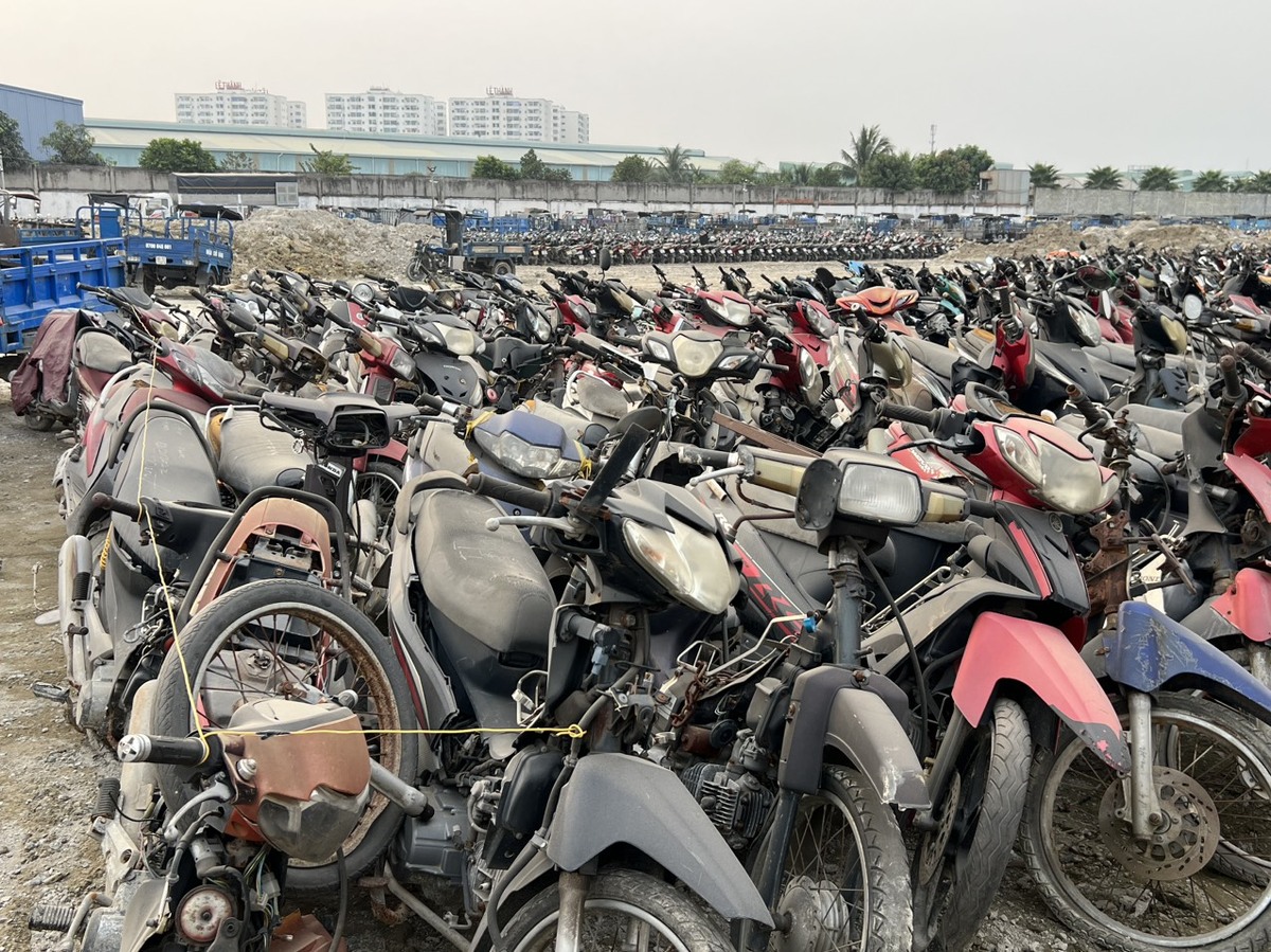 Bãi giữ xe tang vật của Phòng CSGT TP.HCM (xã Lê Minh Xuân, huyện Bình Chánh) rộng khoảng 20.000m2 cũng chất đầy phương tiện.