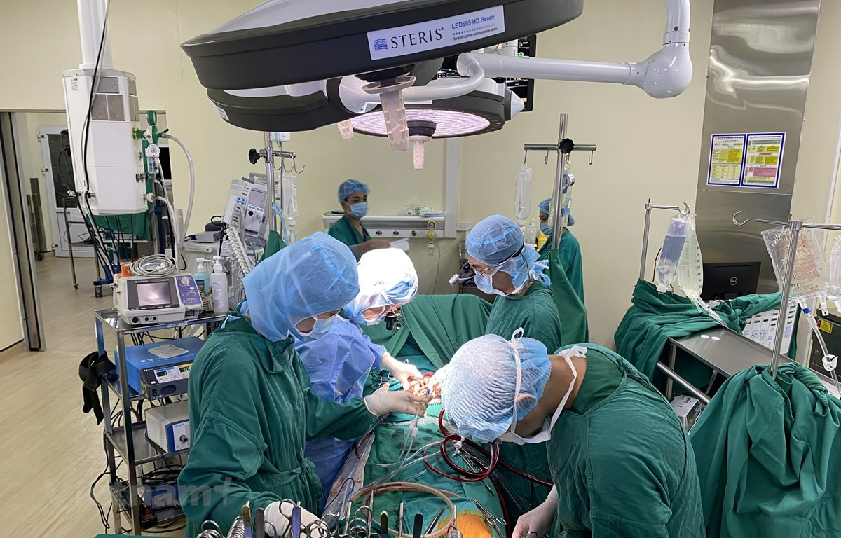 Các bác sỹ Bệnh viện tim Hà Nội thực hiện một ca phẫu thuật. (Ảnh: PV/Vietnam+)