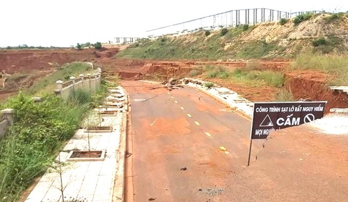 Hiện trường Dự án đầu tư xây dựng công trình Cơ sở hạ tầng kỹ thuật Nhân Cơ bị sụt lún.