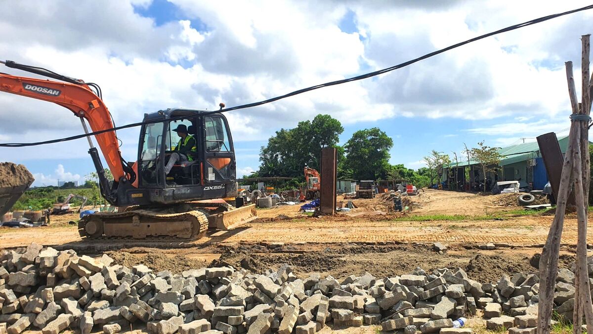 Công ty CP Xây dựng CDC đã cắt hàng rào tôn mở cổng vào khu đất, đổ nền bê tông dày 10cm trên diện tích khoảng 300m2, tập kết vật tư, sắt thép, khung dầm, thiết bị máy móc để thi công giá ống thép.