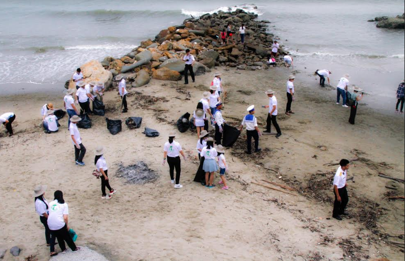Hoạt động gom rác thải làm sạch bãi biển, phối hợp cùng các chiến sĩ hải quân vùng 2 của Hội bảo vệ thiên nhiên và môi trường TP.HCM.