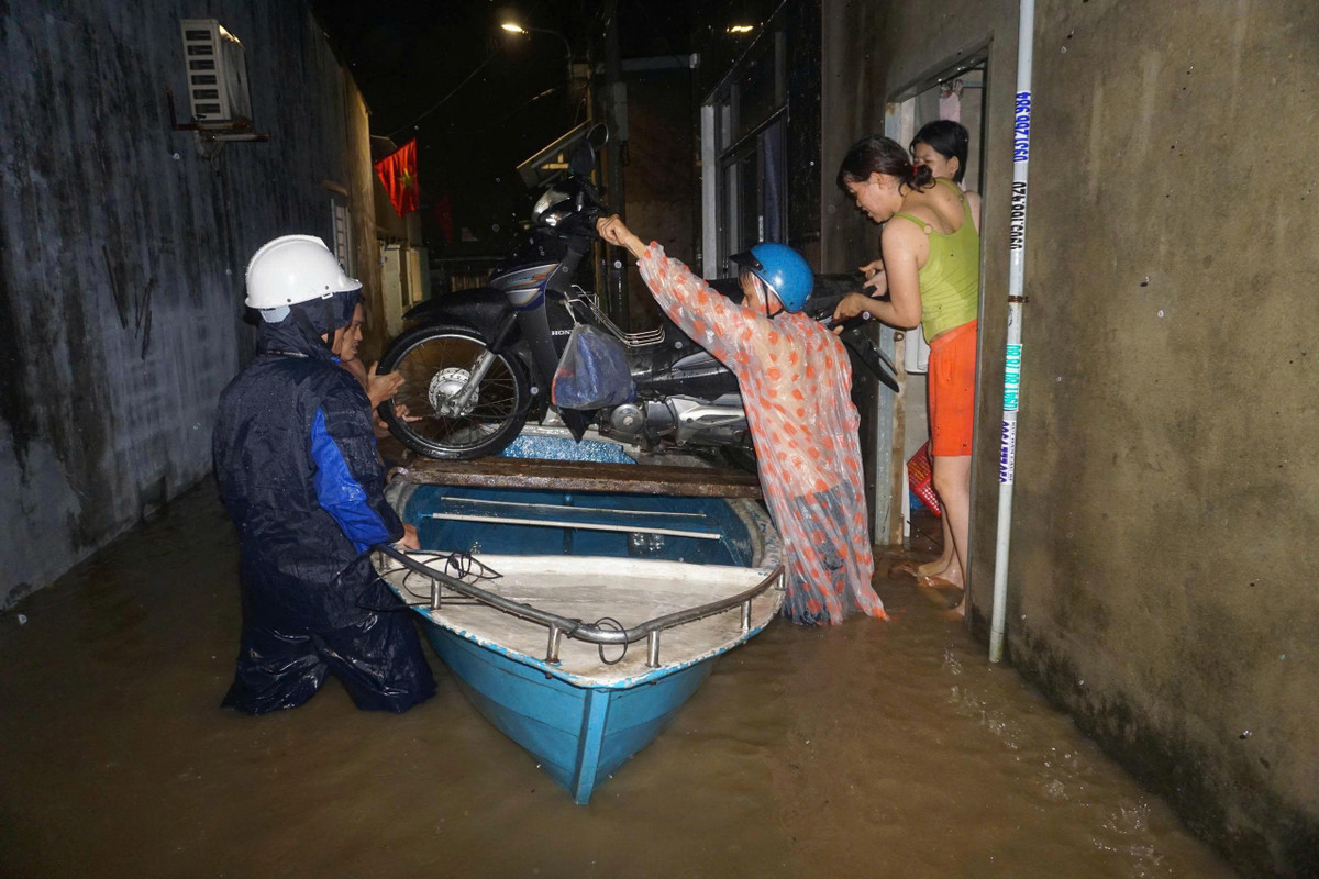 Lực lượng chức năng đã túc trực xuyên đêm, hỗ trợ người dân di dời tài sản, đảm bảo an toàn khu dân cư. (Ảnh: NĐ)