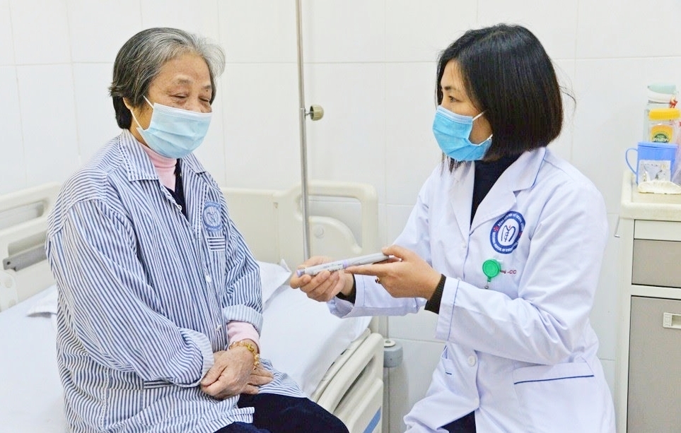 Bác sĩ kiểm tra sức khoẻ cho bệnh nhân tại Bệnh viện Nội tiết Trung ương. (Ảnh: BVCC)