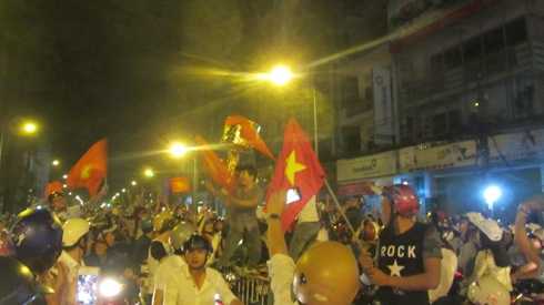 Khi trọng tài chính điều khiển trận đấu giữa Việt Nam – Malaysia thổi còi kết thúc trận đấu với tỷ số 2 – 1, hàng ngàn cổ động viên TP.HCM đã đổ xuống đường, mang theo cờ Tổ quốc hò reo, ăn mừng náo nhiệt.