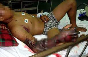Nhưng vài giờ đồng hồ sau vết thương lớn dần và tấy đỏ, đau rát với mức độ nhiều hơn kèm các biểu hiện tức ngực, khó thở nên người thân nhanh chóng đem ông đi nhập viện cấp cứu.