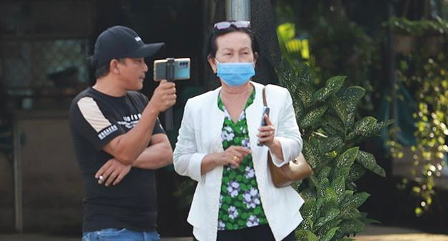Nhiều YouTuber và người dân tập trung bên ngoài trụ sở TAND tỉnh Long An để theo dõi, livestream.