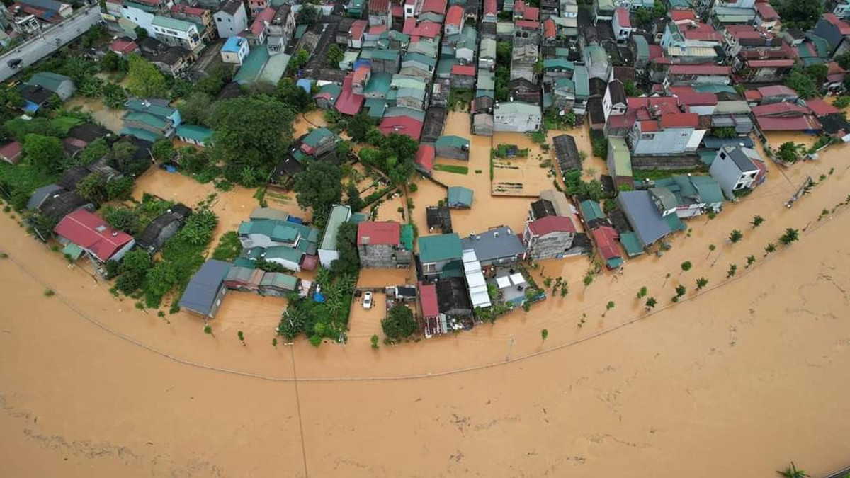 Nước lũ nhấn chìm nhiều nhà dân ở huyện Hòa An, tỉnh Cao Bằng. (Ảnh: XĐ)