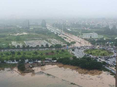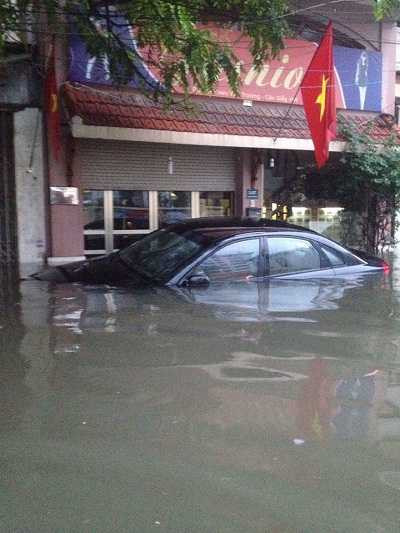 | Nhiều tuyến phố Hà Nội biến thành sông. Ảnh: Otofun |