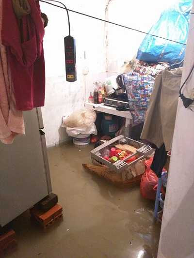 | Người dân phải dùng gạch để kê tủ lạnh và cất gọn đồ dùng ổ điện lên nơi cao hơn. Ảnh: Otofun |