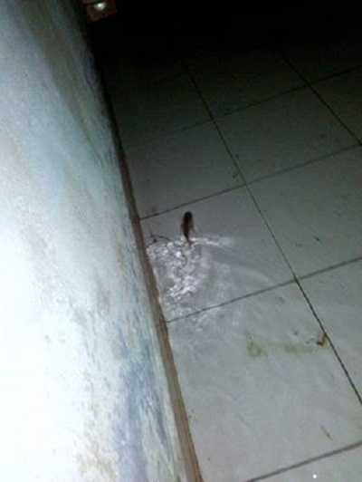 | Nhà vệ sinh cũng không kịp thoát nước và cũng bị biển nước nhấn chìm. Ảnh: Otofun |