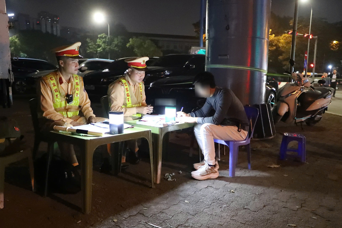 Đáng chú ý, khoảng 21h, tổ công tác ra hiệu lệnh dừng kiểm tra đối với ô tô mang biển số 30B-004.xx do tài xế N.L.C. (sinh năm 1990) điều khiển. Kiểm tra cho thấy người này vi phạm nồng độ cồn ở mức rất cao - 0,454mg/L khí thở, gấp 1,2 lần mức "kịch khung".