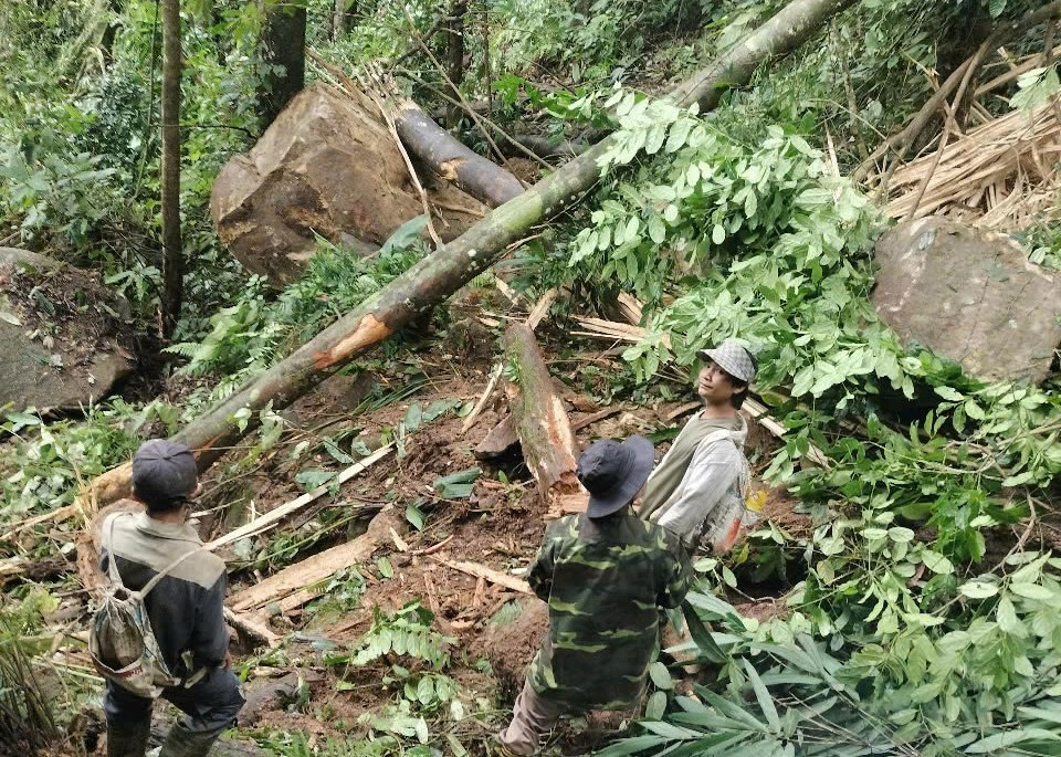 Một số tảng đá lớn nằm chênh vênh ở vực cao hoặc mắc vào một số gốc cây và tiềm ẩn nguy cơ tiếp tục lăn xuống khu dân cư, gây nguy hiểm cho hàng chục hộ dân và điểm trường mẫu giáo tại làng Tu Hon.