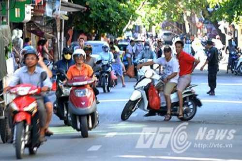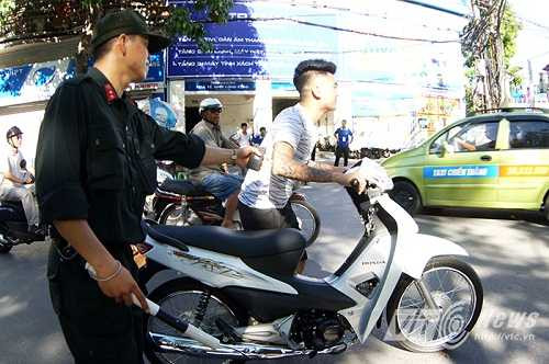 Theo ghi nhận của PV, một thanh niên đầu trần đi xe wave lưu thông từ phố Lê Đại Hành ra Đại Cồ Việt với tốc độ cao, lúc này cảnh sát hóa trang báo qua bộ đàm cho đồng đội ở phía trước chốt chặn, ra hiệu lệnh dừng phương tiện để kiểm tra.