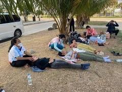 Các tình nguyện viên phải đầu trần tập luyện dưới cái nắng như thiêu như đốt