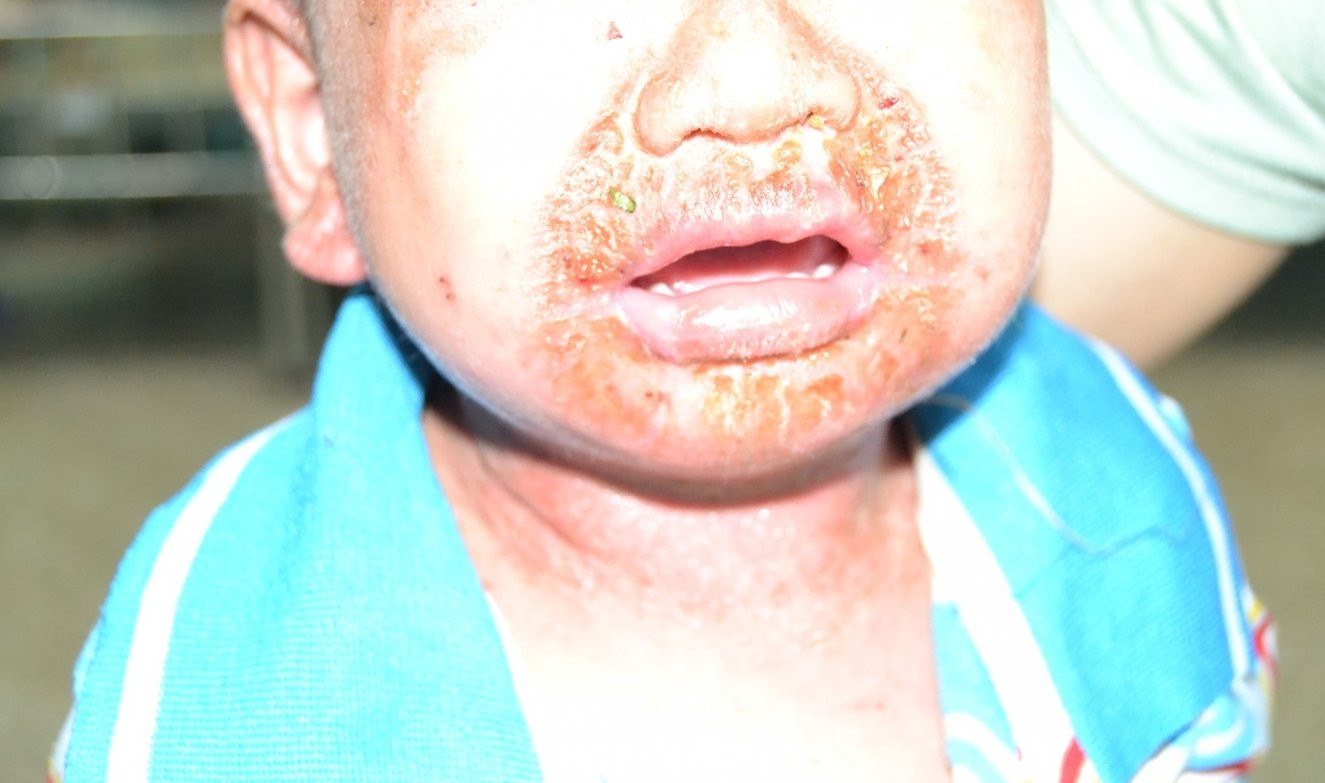 Thông tin từ Bệnh viện Đa khoa Hùng Vương (Phú Thọ) cho biết, bệnh viện vừa tiếp nhận cùng lúc hai bệnh nhi 3 tuổi là cháu N.H.H. (ở Tuyên Quang) và N.V.T (ở Hà Giang) nhập viện khi cơ thể xuất hiện mụn phỏng nước vùng mũi miệng, mắt, trên da xung huyết đỏ nhiều, mụn nước rải rác tứ chi. Các nốt phỏng nước loét nông, chỉ xuất hiện tập trung nhiều ở hốc tự nhiên trên cơ thể 2 cháu bé.