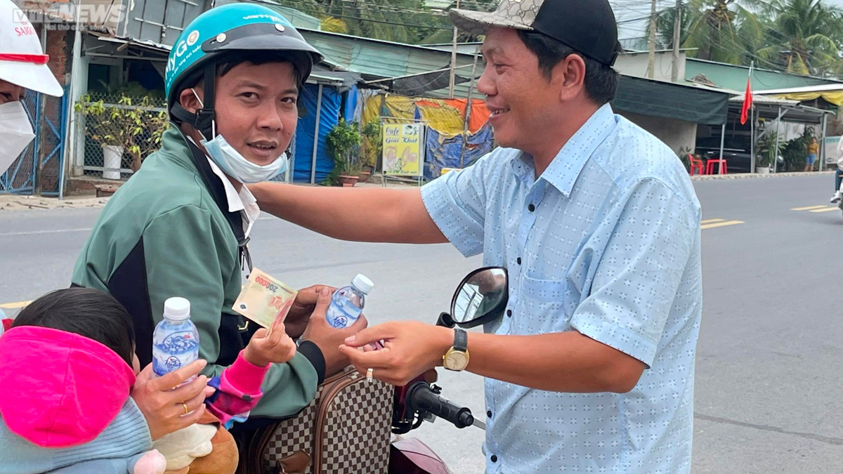 Trước cảnh vất vả của người dân khi phải chạy xe máy dưới trời nắng nóng, ông Huỳnh Võ Duy Phương, Phó Chủ tịch UBND xã Hựu Thạnh (huyện Đức Hoà, tỉnh Long An) đã vận động hơn 10.000 chai nước suối để phát miễn phí cho người dân từ các tỉnh di chuyển lên Khu công nghiệp ở huyện Đức Hoà để làm việc.