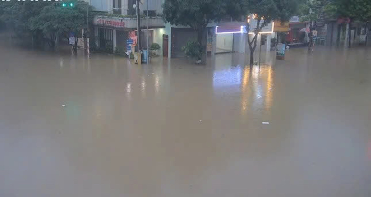 Sáng 21/6, nhiều tuyến phố ở thành phố Thái Nguyên ghi nhận tình trạng ngập lụt nặng nề. Qua hệ thống camera an ninh có thể thấy khu vực ngã tư Lương Ngọc Quyến - Phan Đình Phùng ngập nước, các phương tiện không thể di chuyển.