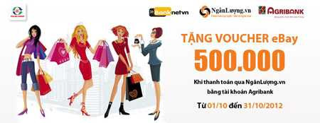 (VTC News) - Từ ngày 01/10 đến 31/10/2012, khách mua hàng online tại Trần Anh thanh toán qua Ví điện tử NgânLượng.vn bằng thẻ ngân hàng Agribank sẽ được nhận ngay Phiếu giảm giá mua hàng trên website eBay.vn trị giá 500.000 đồng. Chương trình này nằm trong khuân khổ hợp tác giữa Trần Anh, Ngân Lượng và ngân hàng Agribank.