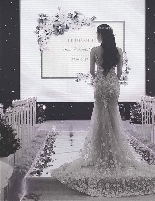 Đặc biệt trên màn hình led phía sau hai người còn ghi tên và thời gian diễn ra đám cưới sẽ diễn ra vào ngày 27.8