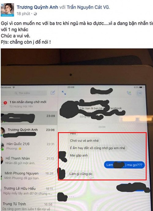 Hình ảnh từng được Trương Quỳnh Anh đăng tải trên facebook cá nhân "tố" Tim khi đi công tác nước ngoài, sau đó được cô nhanh chóng xoá đi