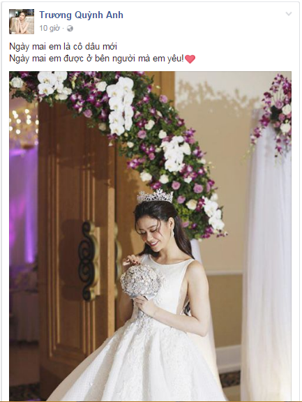Trước thông tin đó, Trương Quỳnh Anh có dịp gây xôn xao trên trang cá nhân khi úp mở về đám cưới trong một ngày không xa, khiến người hâm mộ không khỏi chờ đợi một cái kết viên mãn.