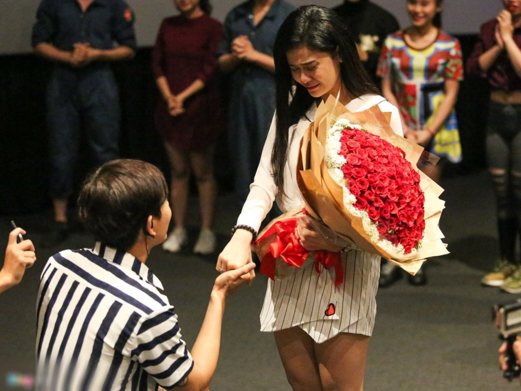 Hình ảnh Tim cầu hôn Trương Quỳnh Anh trong một rạp phim khiến người đẹp bật khóc vì hạnh phúc