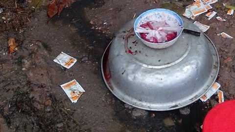 | Vỏ những gói bột hãm tiết canh vứt la liệt trên mặt đất. Ảnh minh họa. |