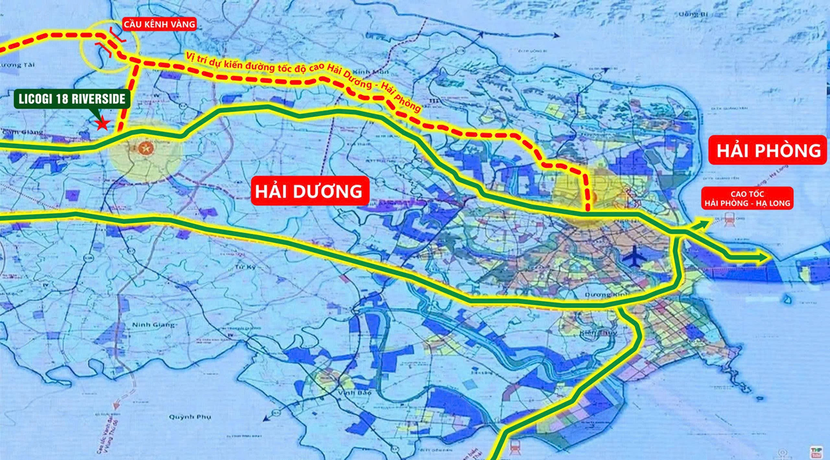 Trong đó có tuyến Vành đai 5 vùng Thủ đô chạy qua Hải Dương đang triển khai; đề án xây dựng tuyến đường tốc độ cao dài 23,5km đến trung tâm Hải Phòng; mở rộng đường trục Bắc - Nam TP Hải Dương (Ngô Quyền kéo dài); đường dẫn cầu Hàn nối với QL37 và đường Vành đai 1 Hải Dương - hai trục giao thương quan trọng chạy qua khu đô thị Licogi 18 Riverside.