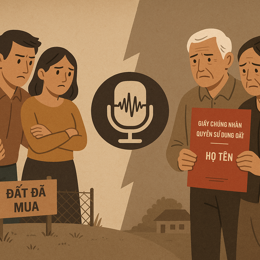 Vợ chồng tôi có nhờ bố mẹ vợ tôi đứng tên mua hộ một mảnh đất. Giờ chỉ có bản ghi âm nhờ bố mẹ vợ mua nhà đất đứng tên hộ thì tôi có đòi được mảnh đất đó không? (Ảnh minh họa: AI)