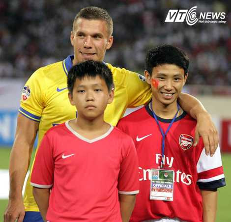 | Running mam - Vũ Xuân Tiến đứng cùng Podolski (Ảnh: Quang Minh) |