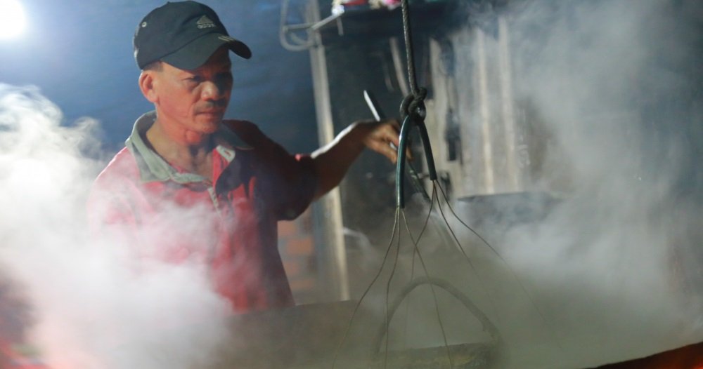 Hàng ngày, người lao động tại lò hấp cá ở cảng Quy Nhơn (Bình Định) tất bật tranh thủ thức dậy từ 2h để hấp cá trong lò lửa hừng hực lên đến 60°C.