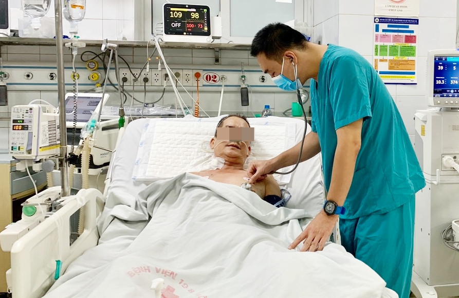 Sau can thiệp, ông được chuyển về khoa Điều trị tích cực và Chống độc trong tình trạng hôn mê, thở máy, dùng thuốc vận mạch, trợ tim, chống rối loạn nhịp và chống đông.