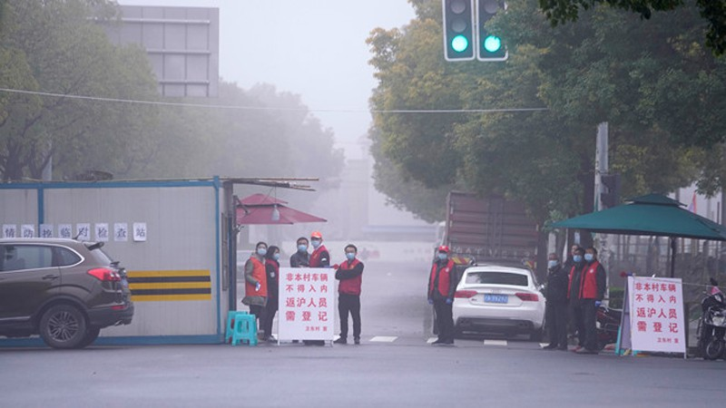 Chốt kiểm tra bên ngoài khu dân cư ở Thượng Hải. (Ảnh: Reuters)