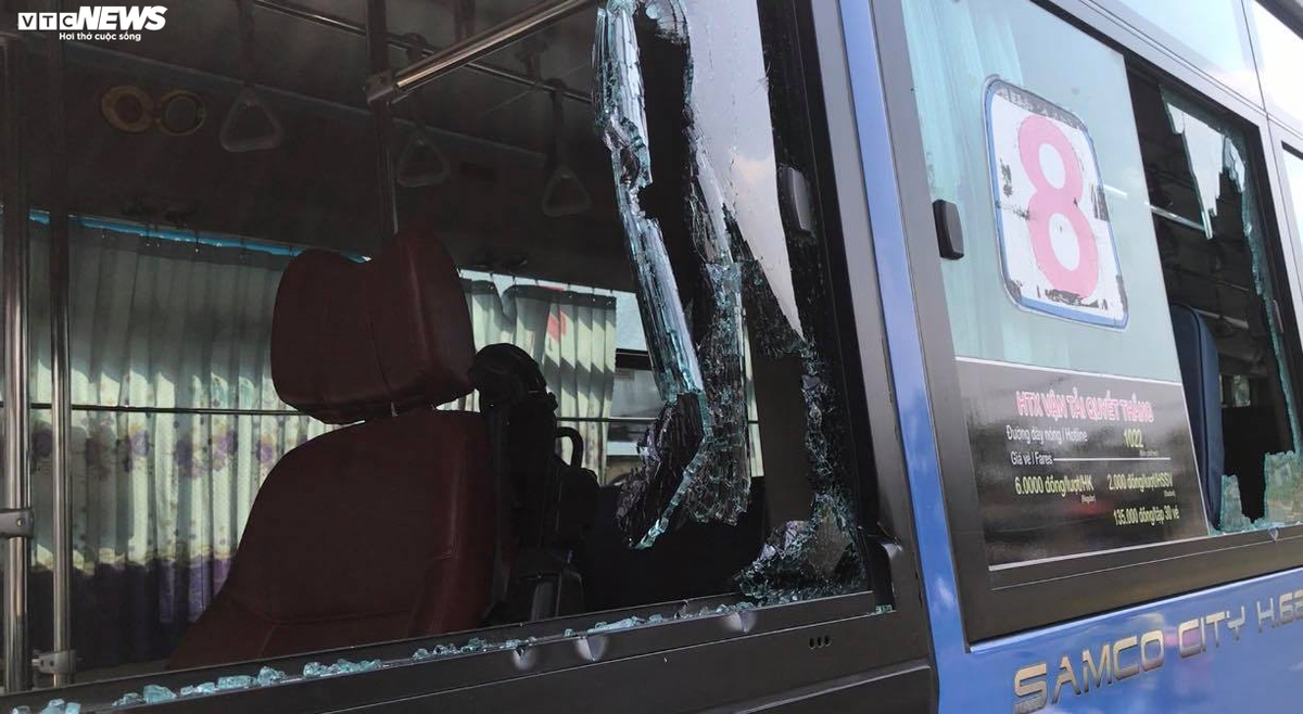 Tại hiện trường, chiếc xe buýt số 8 bị vỡ kính và hư hỏng nhiều bộ phận. Nhóm thanh niên rời đi sau khi đập phá.