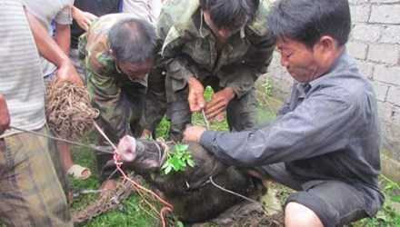 Con chó săn của anh Phùng cũng bị lợn rừng cắn chết tại chỗ. Nhóm thợ săn sau đó bắn thêm ba phát súng mới hạ gục được con lợn nặng gần một tạ.