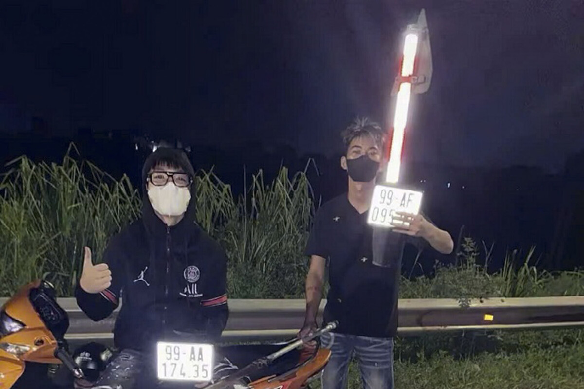 Các đối tượng đã dùng hung khí chém vào xe máy, phá hoại phần đuôi xe và lấy đi hai biển số mô tô.