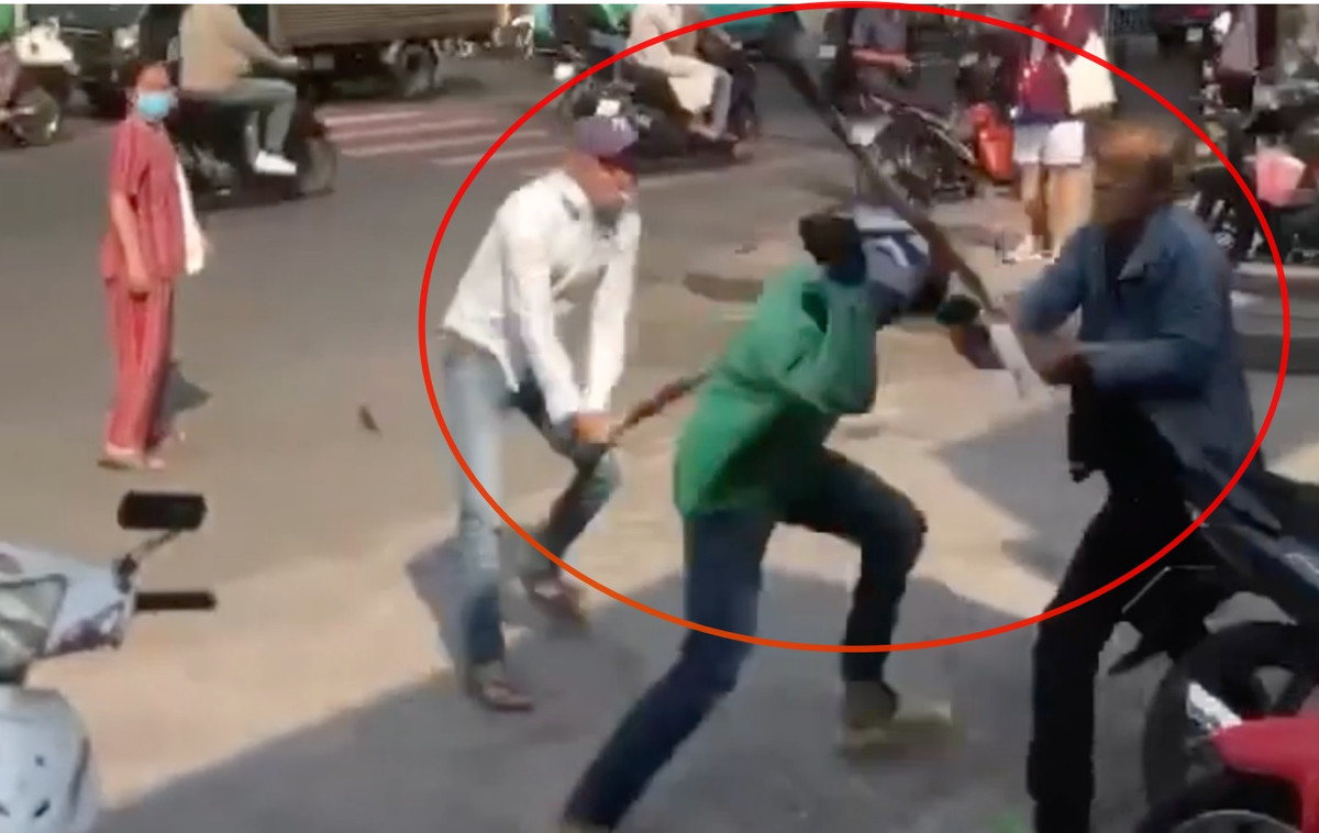 Một lúc sau, tài xế xe ôm công nghệ quay trở lại khu vực cổng bệnh viện và tiếp tục cãi nhau với nhóm tài xế xe ôm truyền thống. Lúc này, tài xế xe ôm công nghệ cầm dao, mũ bảo hiểm, còn 3 tài xế xe ôm truyền thống cầm gậy lao vào đánh nhau gây náo loạn đường phố.