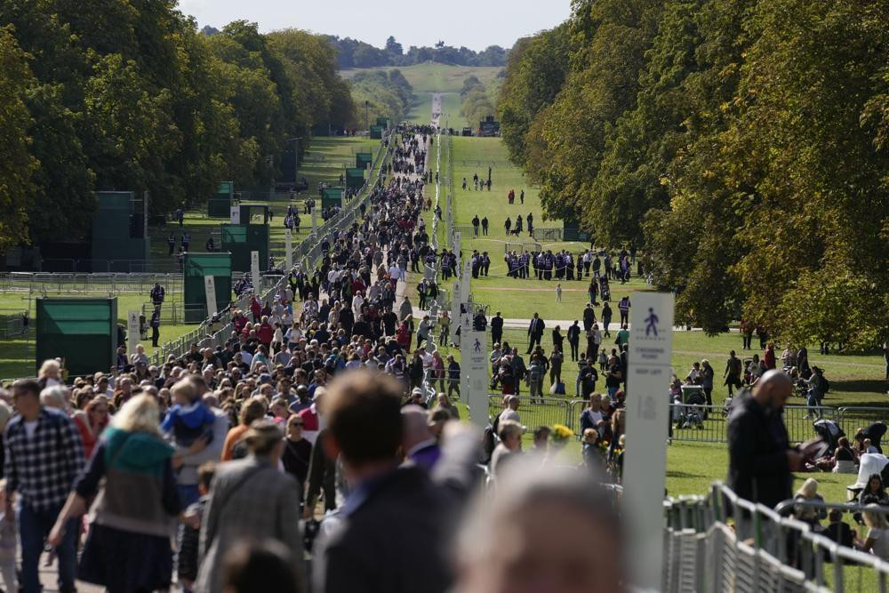 8 km hàng người chờ đợi để được vào viếng Nữ hoàng tại Đại sảnh Westminster. Hàng người kéo dài từ Tòa nhà Quốc hội dọc theo bờ nam sông Thames đến Công viên Southwark.