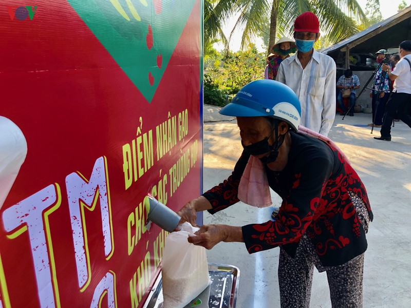 Bà Nguyễn Thị Kim Hân - Phó Chủ tịch UBMTTQ Việt Nam huyện Long Mỹ, cho biết: Là huyện vùng sâu, vùng xa của tỉnh Hậu Giang, hiện Long Mỹ vẫn còn hơn 1.700 hộ nghèo, tập trung ở hai xã Xà Phiên và Lương Nghĩa. Phần lớn những hộ này là người già yếu, neo đơn, ít ruộng đất phải đi làm thuê, làm mướn hoặc bán vé số dạo. Chính vì vậy, khi dịch bệnh xảy ra nhiều người lâm vào cảnh khó khăn khi không có công ăn việc làm. Những chiếc máy ATM gạo ra đời đã thật sự giúp cho mọi người vượt qua cơn khốn khó.