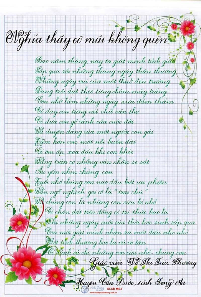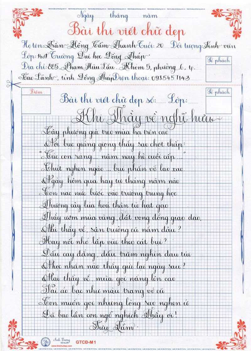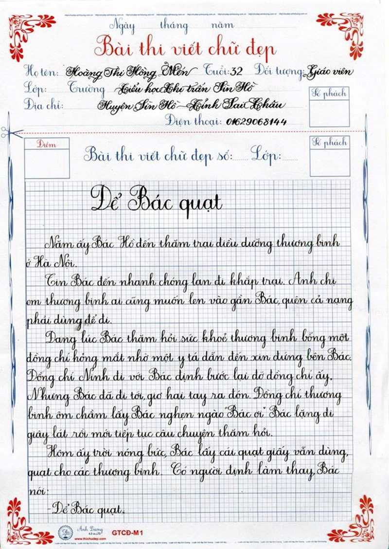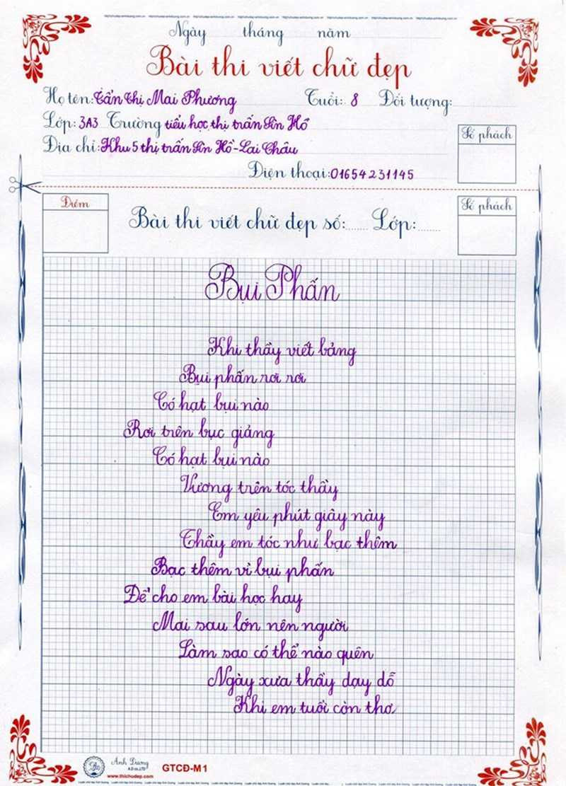 Các bài thi viết chữ đẹp sau đây được sưu tầm từ các cuộc thi viết chữ đẹp các cấp và cuộc thi “Viết chữ đẹp lần 2- do Group Nét Chữ Việt tổ chức”, “Viết chữ đẹp online”.