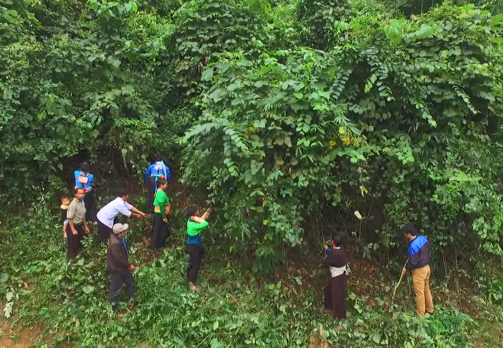 Người dân bản Pù Ngùa đi chặt cây lá ngón.